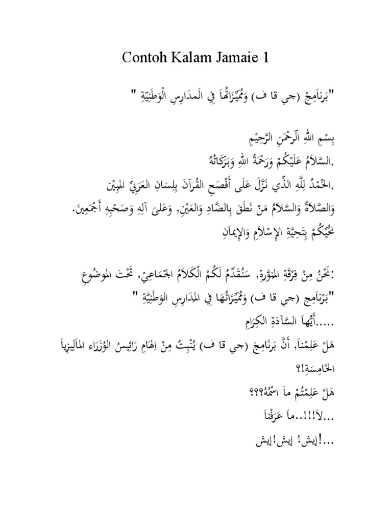Teks Kalam Jamaie Bertajuk Program Jqaf Di Sek Rendah Pdf